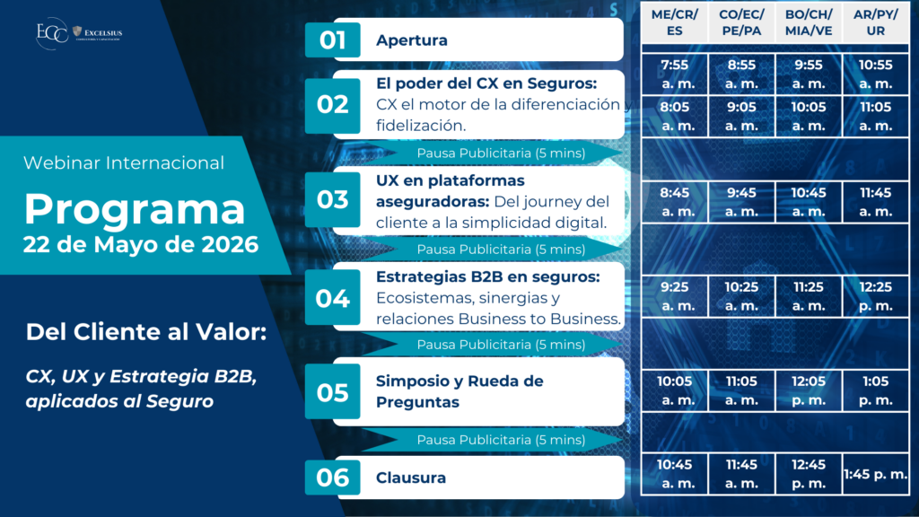 Participa del 2do. Webinar Internacional: Del Cliente al Valor: CX, UX y B2B, aplicados al seguro.